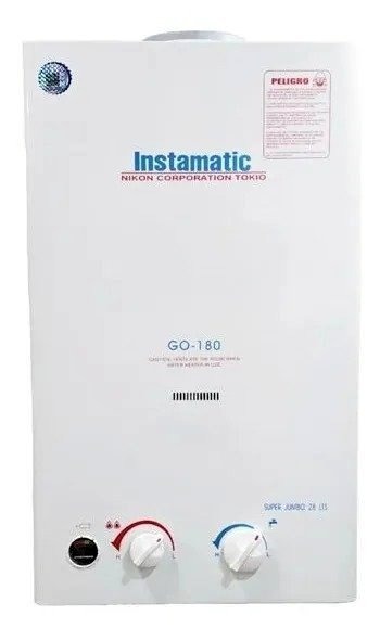 El calentador Instamatic de 28 LT te asegura siempre agua caliente ilimitada con ahorro en tu consumo de gas. Instamatic cuenta con una tecnología validada por más de 20 años en el mercado ecuatoriano. MODELO: GO – 180 MEDIDA: 28LT Agua caliente que nunca se termina. Trabaja con gas GLP. Funciona con baja presión de agua. Encendido automático con el paso de agua. Sensor contra sobre calentamiento Válvula de alivio de presión de agua y vapor Indicado NTE INEN 2569 20DS Fabricado en TAIWÁN