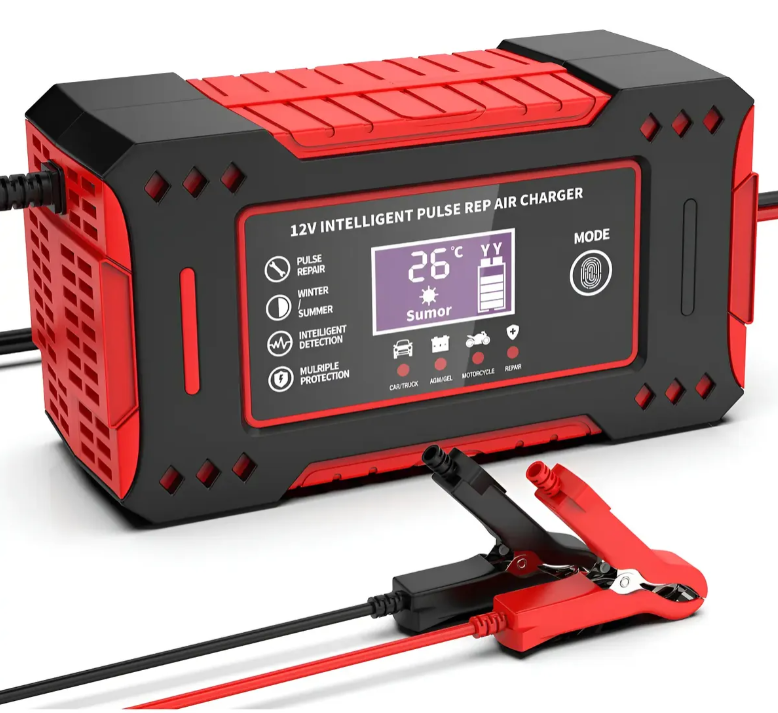 Este cargador está diseñado para reparar y mantener baterías de 12 voltios, ideal para carros y motos. Cuenta con tecnología de pulsos inteligentes que ayuda a prolongar la vida útil de la batería y mejorar su rendimiento.
