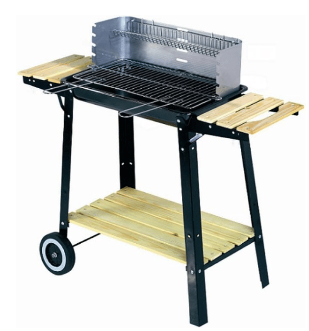 Disfruta de asados perfectos en cualquier lugar con esta práctica parrilla a carbón portátil. Su diseño con ruedas y repisas laterales facilita el transporte y la organización de tus utensilios y alimentos.